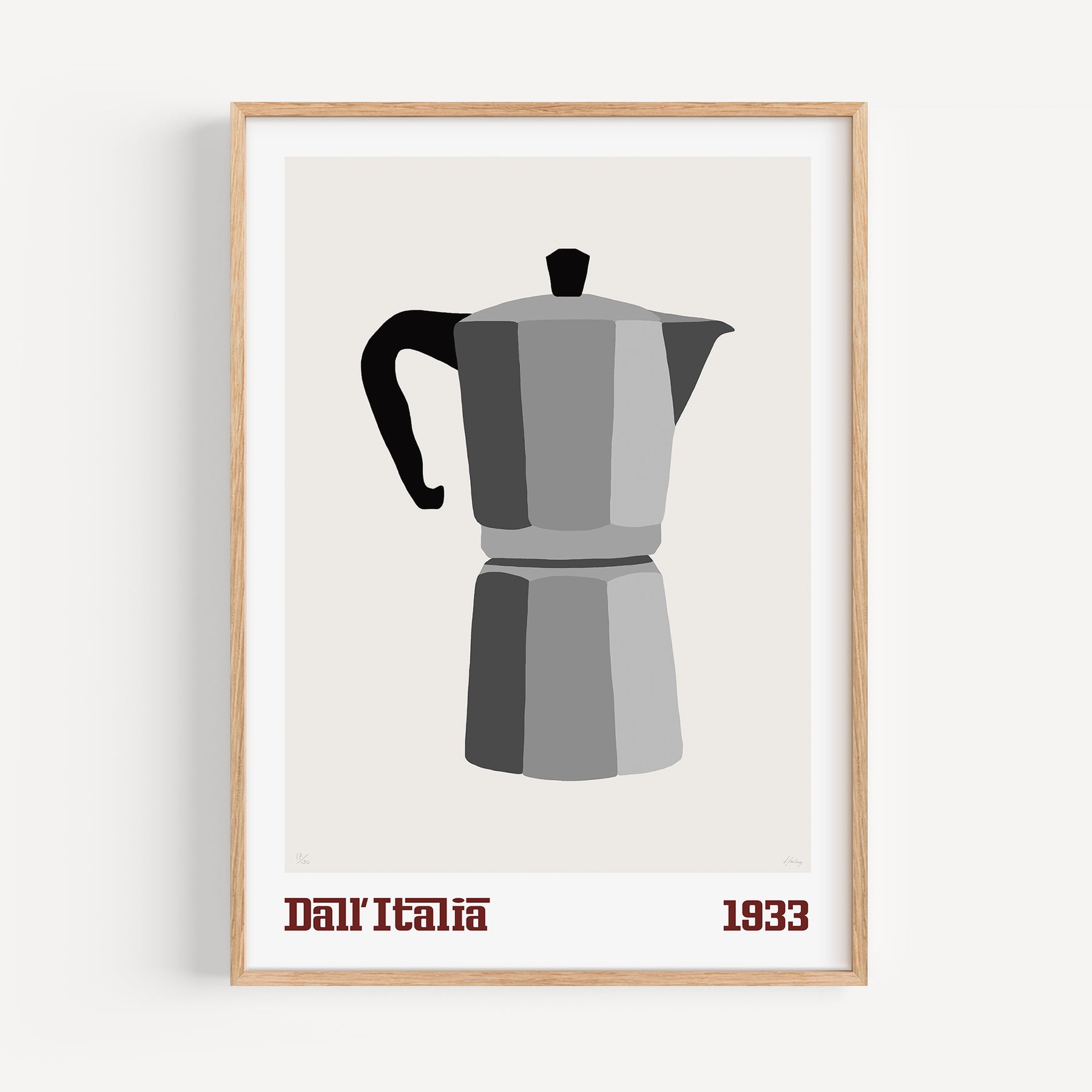 Bring a touch of vintage charm and contemporary artistry to your home or office. This art print serves as a subtle nod to design history and the enduring appeal of functional beauty. It's an ideal choice for coffee enthusiasts, lovers of Italian culture, or anyone seeking to infuse their surroundings with understated elegance and a sense of calm.