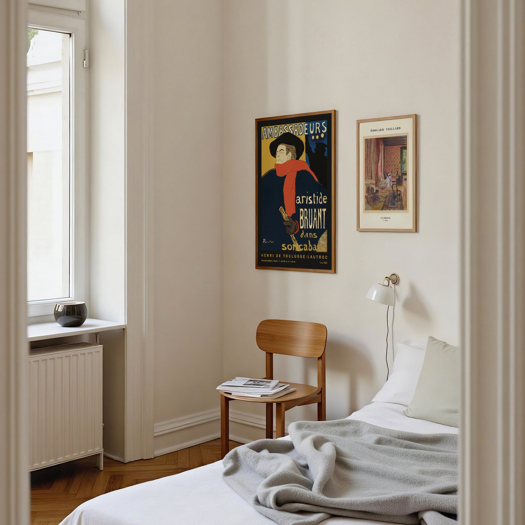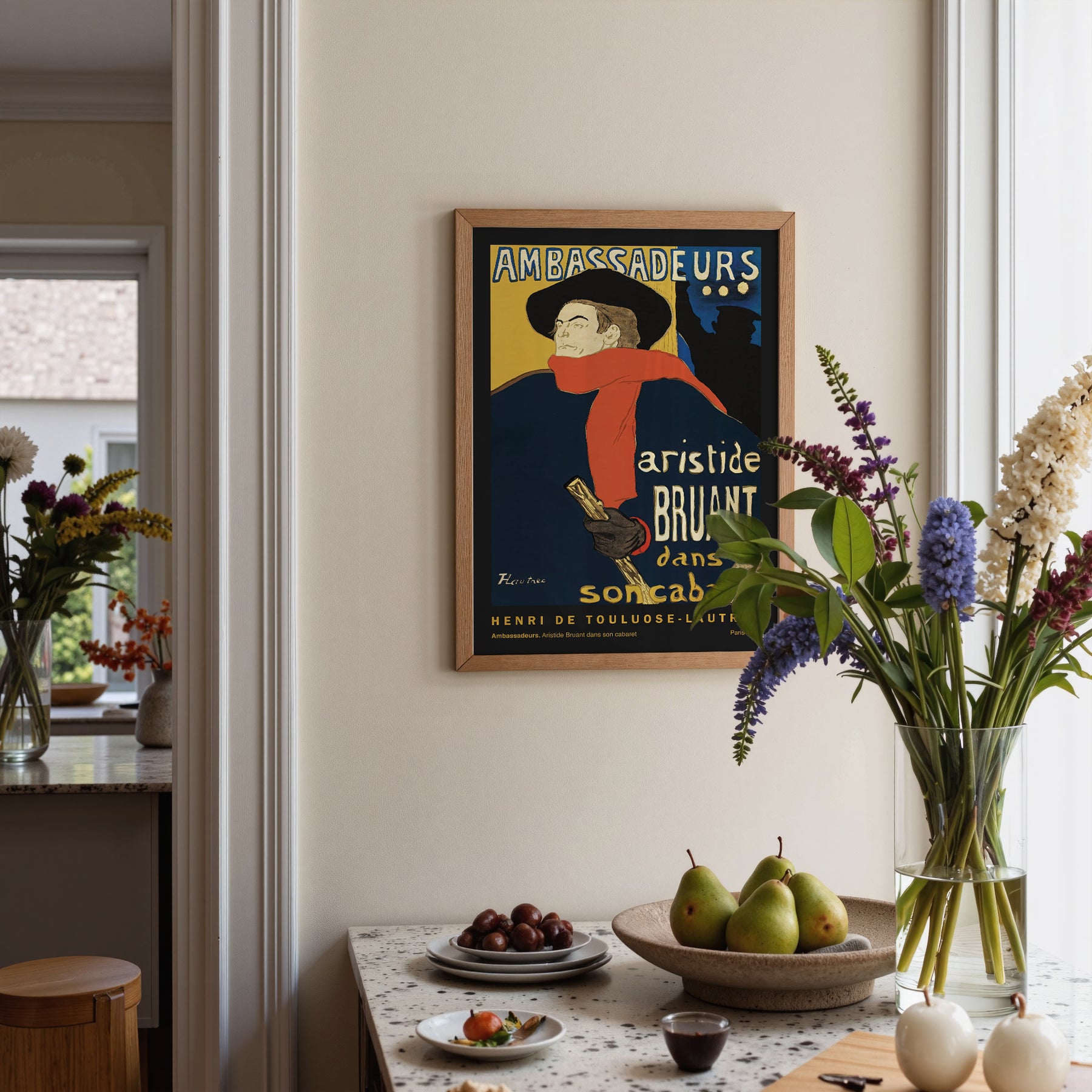 Step into the vibrant world of Parisian cabarets with our premium poster print featuring Henri de Toulouse-Lautrec's iconic 'Aristide Bruant dans son cabaret.' This striking piece captures the raw energy and distinctive style of a bygone era, bringing a touch of Belle Époque elegance and bohemian charm to your space. With its bold colors and compelling subject, this print is a conversation starter, perfect for art lovers and those who appreciate a rich slice of history.