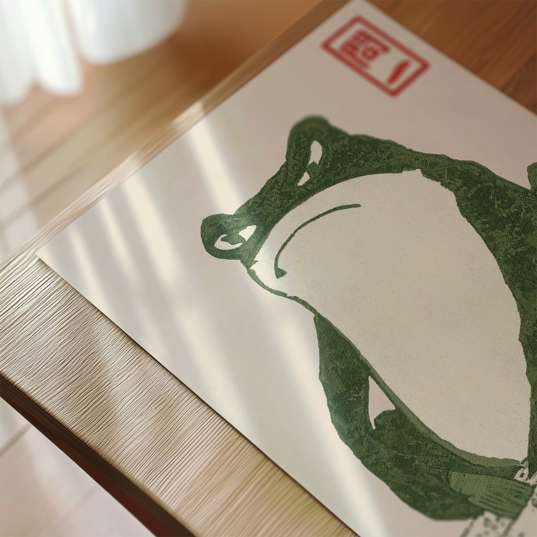 Green Woodblock Frog 2 Poster